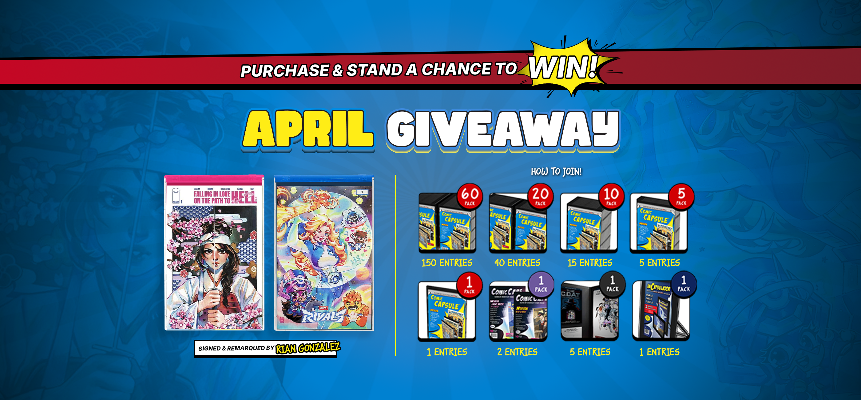 In collaboration with Raremarq, April's giveaway features 2 signed & remarqued comics from our Artist of the Month, Rian Gonzales!