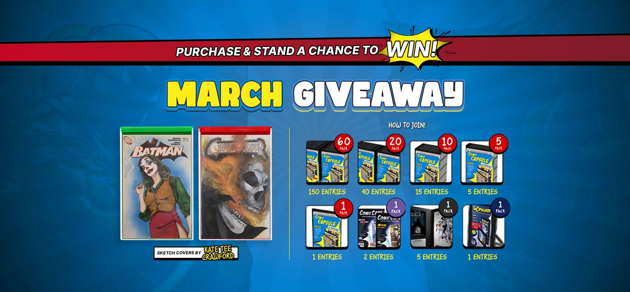 - To enter the Giveaway, individuals can purchase a ComicCapsule during the period from March 1-31 2026 or alternatively, submit their entry via mail without making a purchase.